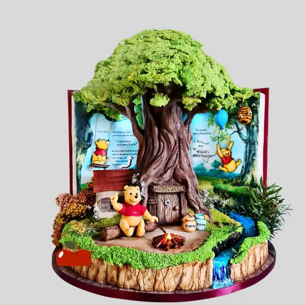 This playful Winnie the Pooh-themed cake is not only delicious but also thoughtfully crafted to enchant children and adults alike. It’s the ideal way to add a touch of whimsy to your celebration and create lasting memories. Whether you’re hosting a family party or a birthday bash, this cake is sure to bring smiles and laughter to your loved ones. Why settle for ordinary when you can elevate your special occasion with a cake that captures the joyful spirit of childhood?